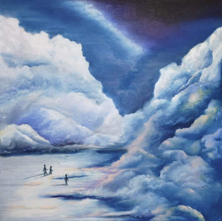 Another oil pastel masterpiece, Bluesky depicts a steely grey sky in all of its glory