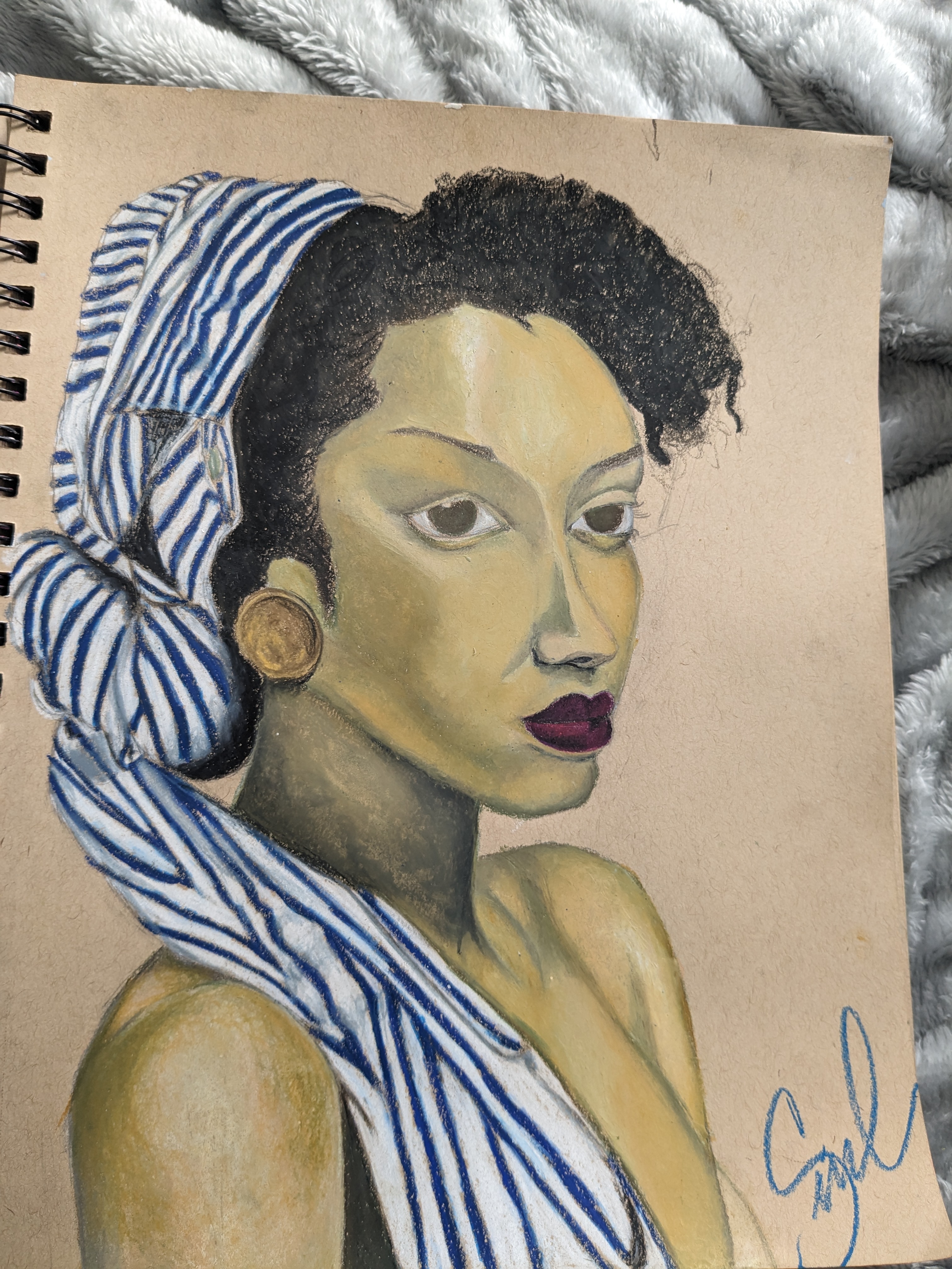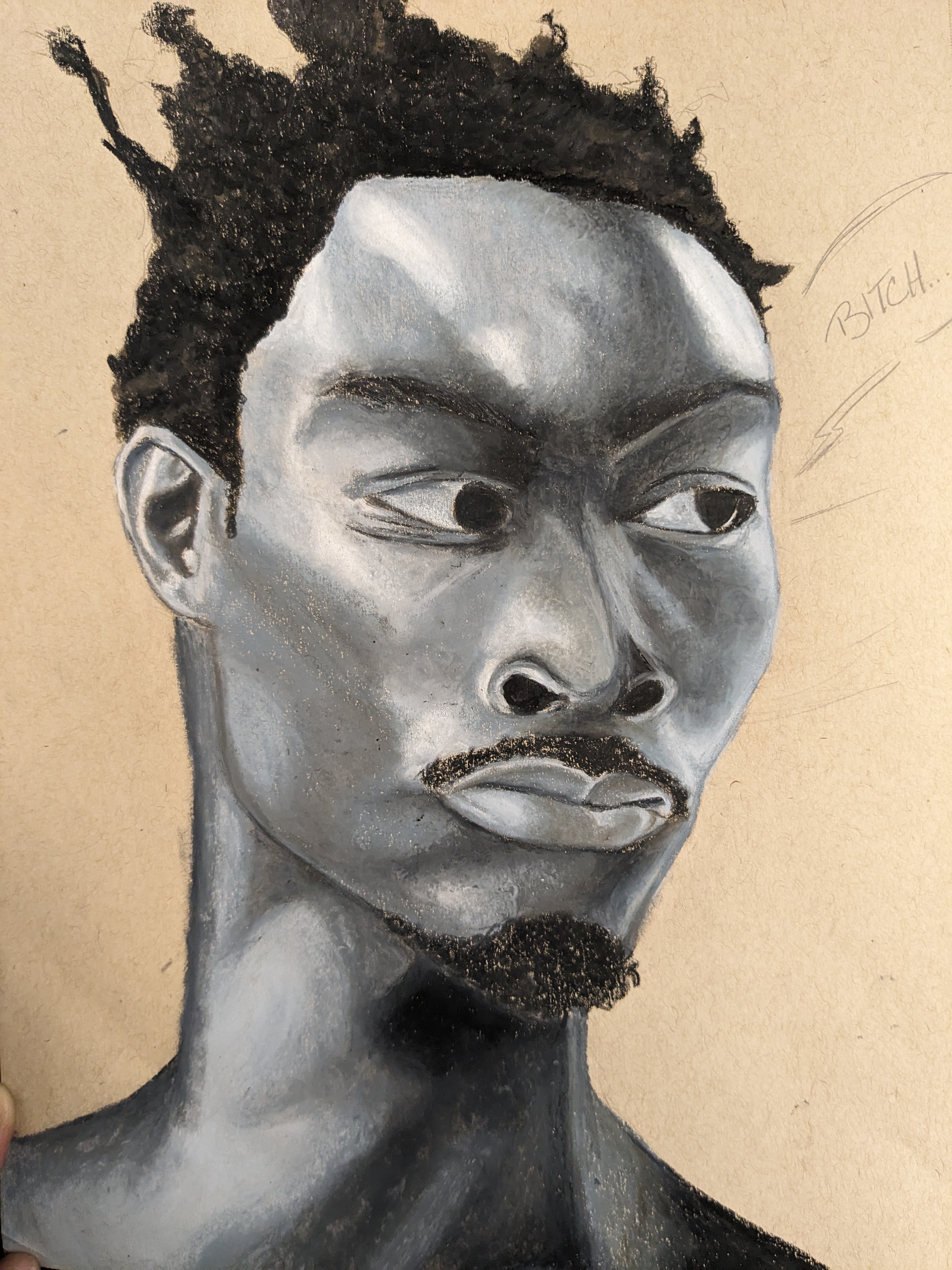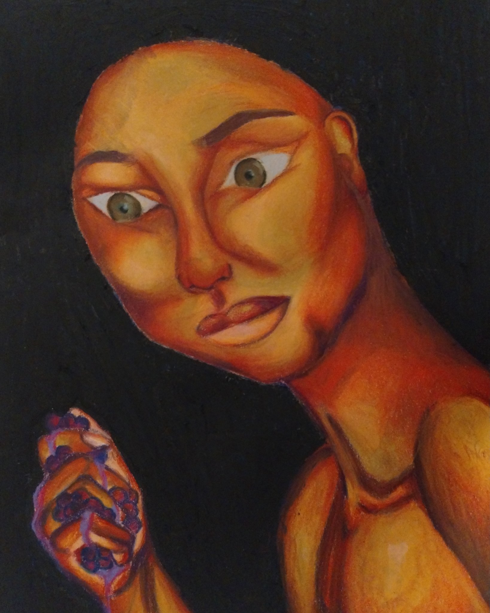 Freehand portrait study. Oil pastel.